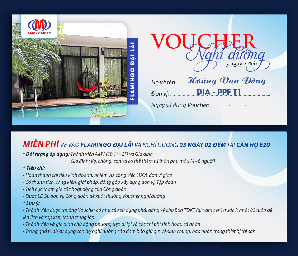 Voucher có giá trị 1 năm, mỗi thành viên được nhận Voucher đăng ký thời gian sử dụng cho Công đoàn (thông tin chi tiết trên Voucher)